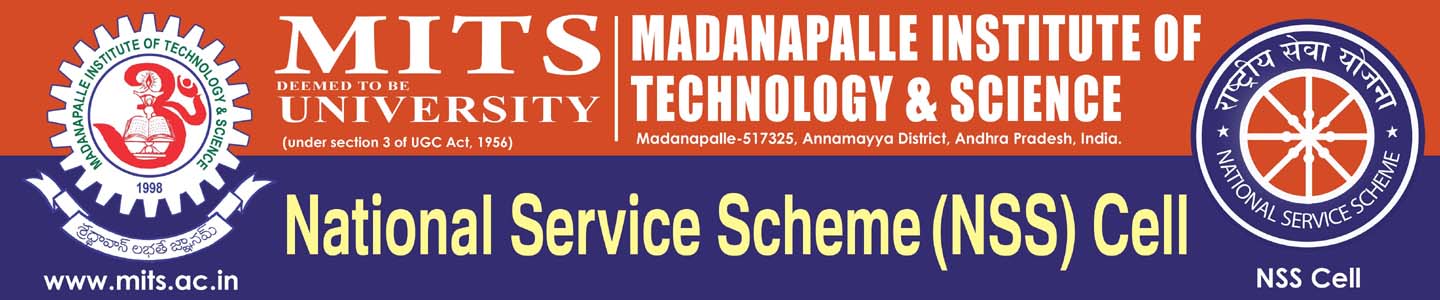 National Service Scheme Unit has been introduced at MITS - Deemed to be University since 2003 as a part of the academic programs and since then NSS has been functioning as a regular feature in the realm of our Academics. The overall objective of the scheme is educational and service to the community is the activity through which the objective is sought to be achieved. It is a student-cantered program in which projects are implemented by the NSS volunteers in the community in close collaboration with the community and thereby it provides vast scope for the student's interaction with the people.